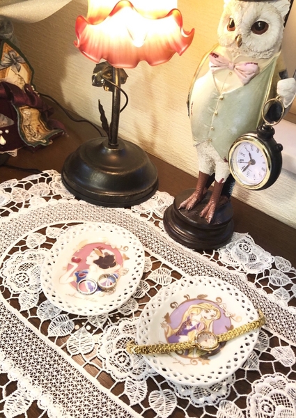 小物入れだけど、お皿の淵はレース採りになっていて、写真ではわかりづらいですがプリンセスの周りの縁取りはゴールド箔となっていて豪華!これだけで絵になります!!