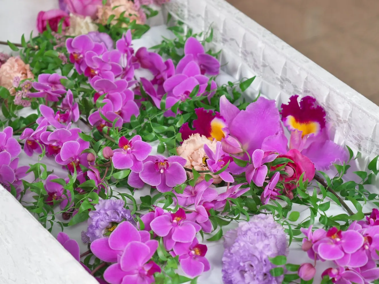 プランに含む内容:生花祭壇、祭壇用ご遺影(A0サイズ/電照額)、花化粧、メモリアルフォト(2日分)、寝台車(病院等~ご安置場所50kmまで)、寝台車(ご安置場所~式場50kmまで)、ご搬送用布団、霊柩車(50kmまで)、ドライアイス(3日分)、ご安置料金(3日分)、ご寝棺(特1号木棺)、ご寝棺用布団(京都西川高級羽毛布団)、骨壺ピロー、枕飾り、自宅飾り(プレミアム)、自宅飾り用供花、自宅用ご遺影(四ツ切・手札サイズ)、プリザーブドフラワー、白木位牌、拝礼用具一式、受付、記録帳類一式、看板(白木看板12尺)、会葬礼状(2ツ折100枚)、湯灌(プレミアム湯灌)、式場、火葬場使用手続き代行、押し花アート、和らぎの花、お供え花、企画管理費