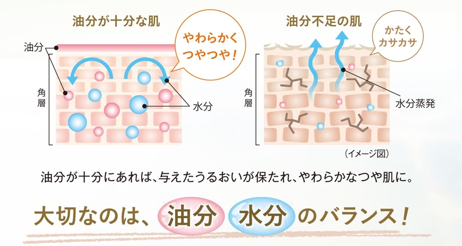 肌は年齢と共に水分だけでなく油分も不足し、うるおいを保ちにくくなります。さらに強い日差しが降り注ぐ過酷な夏を過ごした肌や髪は紫外線ダメージが蓄積し、かたくごわつき、乾燥しがちです。そんな今の時季こそ、プラスオイル美容で、やわらかくうるおう肌へ整えましょう。