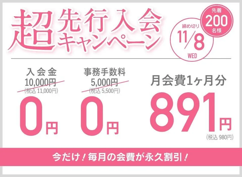 月会費が永久割引となる超先行入会キャンペーンを実施