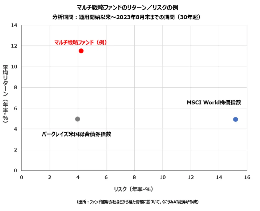 このマルチ戦略ファンドは、金融市場の影響を受けにくい運用を行っており、幅広い資産クラス、国・地域、戦略、業種などへの分散投資に加え、適切なリスク管理体制を構築しています。特に金融市場の変動が激しい局面でも、安定的で堅調なパフォーマンスを維持しています。