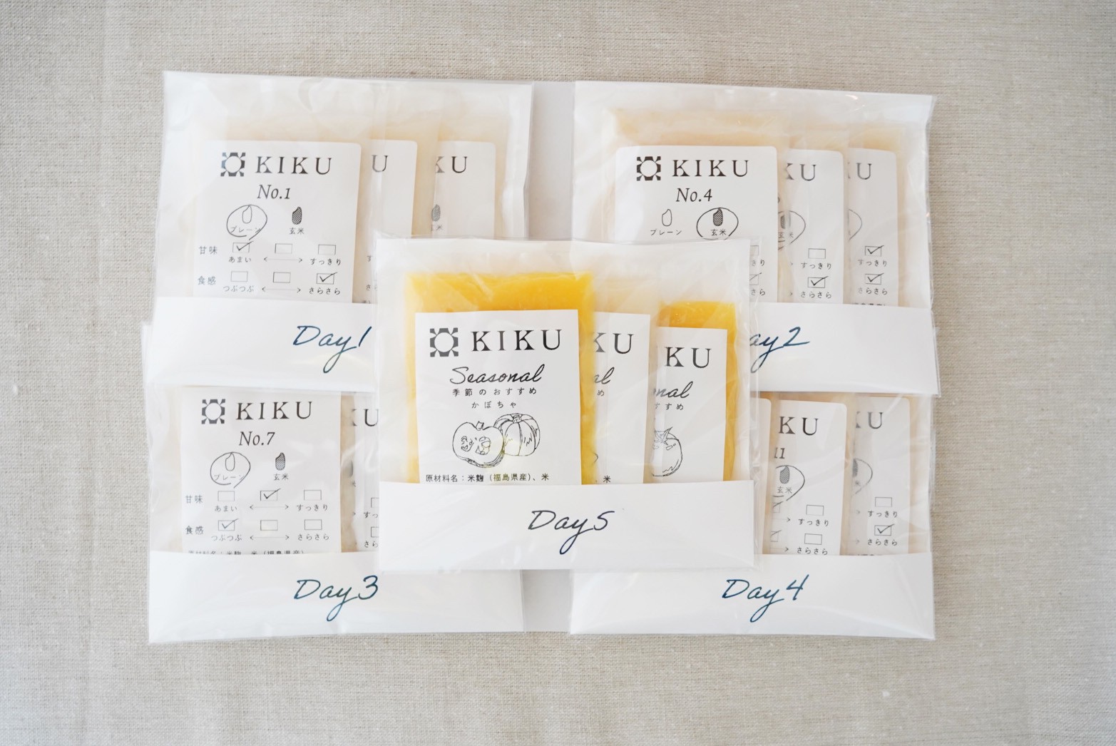 明日の私が素敵になる発酵ブランド「KIKU」とは創業150年の老舗こうじ屋が運営する、お客様にとって気軽に美味しく発酵ある暮らしを続けていただくための発酵商品ブランドです。麹(こうじ)の漢字の音読みが「きく」であることと、発酵食品の機能性が「効く」をかけた名称となっております。