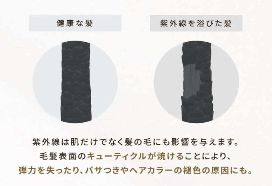 NULLフレグランスオイルミストは、乾燥やドライヤーなどの熱だけでなく、紫外線も防ぐことができます。