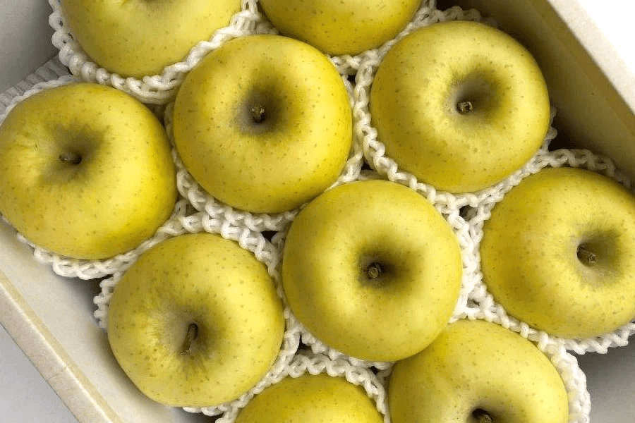 「ゴールデンデリシャス」と「千秋」の交配品種で、その名のとおり黄色の外観が印象的なりんごです。パリッした食感で、甘みと酸味のバランスが良く、果汁が多いのが特徴です。貯蔵性にも優れており、長期保存が可能です。