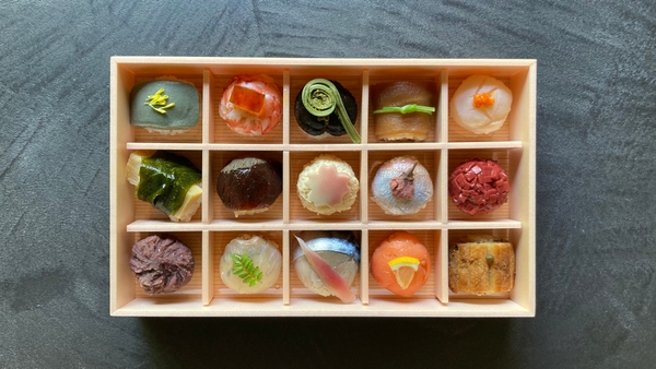 生湯葉、生麩など京都ならではの素材や、季節に応じた旬の食材を使ったお寿司は味だけでなく見た目も楽しませてくれる逸品となっております。