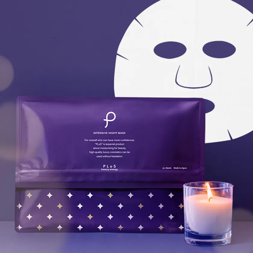 乳白バランス美容液が厚生地シートにたっぷり染み込んだ夜用スキンケアマスク「プリュ インテンシブ ナイトマスク」。