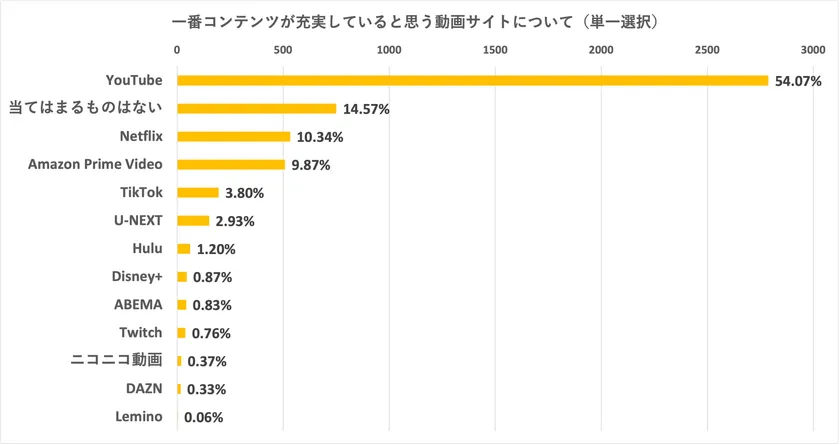 <一番コンテンツが充実していると思う動画サイトについて(単一選択)>