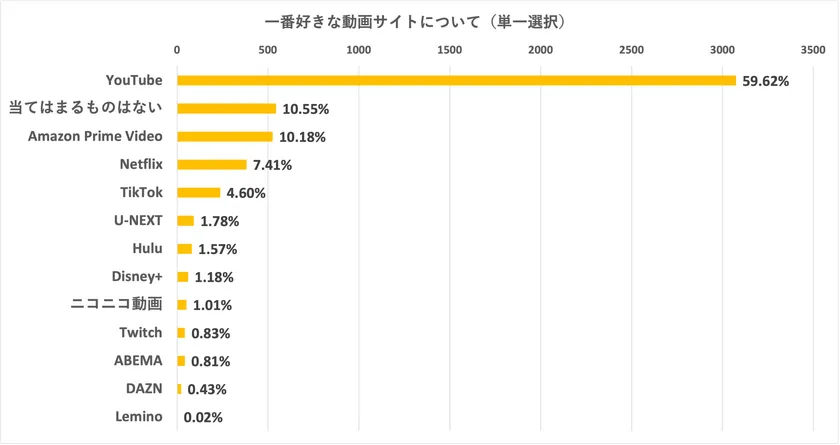 1位は今回もYouTubeでしたが、前述の一番視聴している動画サイトの順位と比較すると人数は若干少なくなり、その分は他の動画サイトが増えました。