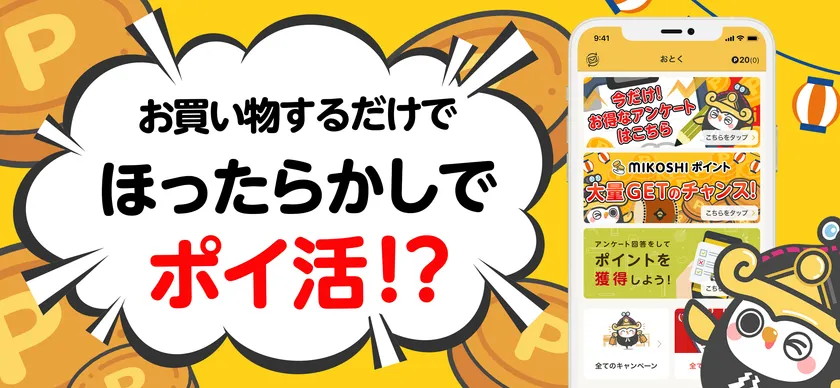さらに、キャンペーンの商品購入やアンケート、商品に対するフィードバックをすると、たくさんポイントをためることができます。また、MIKOSHIは自動でオンライン上の注文履歴をまとめてEC家計簿をつけることもでき、便利でお得なアプリです。