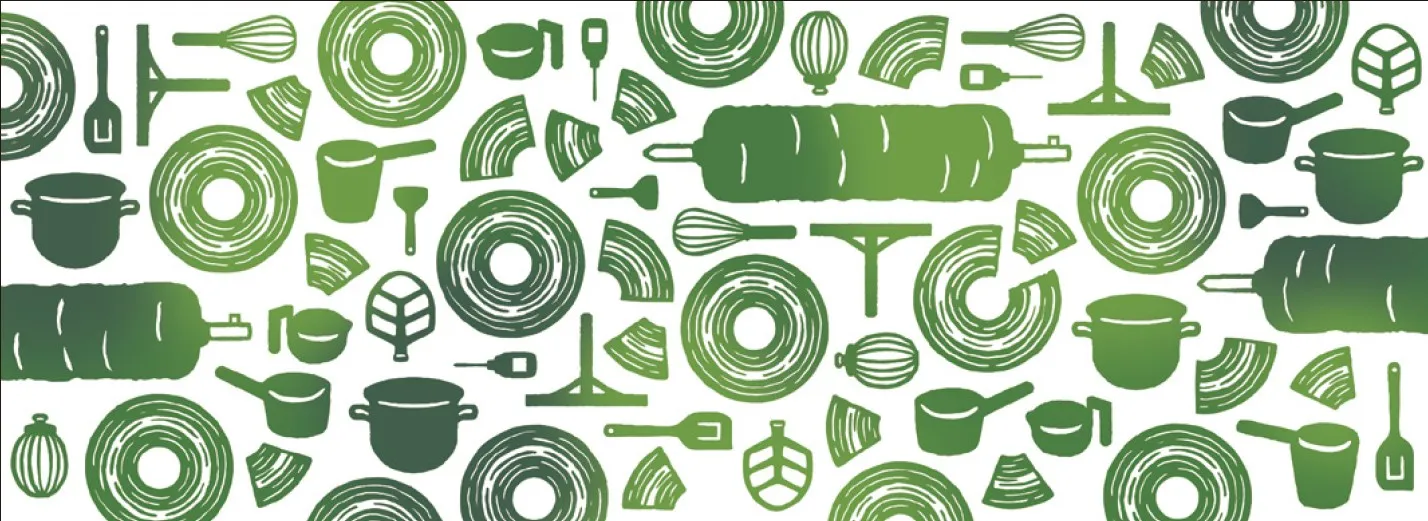 「ばあむマイスター」が京ばあむを焼き上げるまでに欠かせない、数々の道具をちりばめたてぬぐいです。
