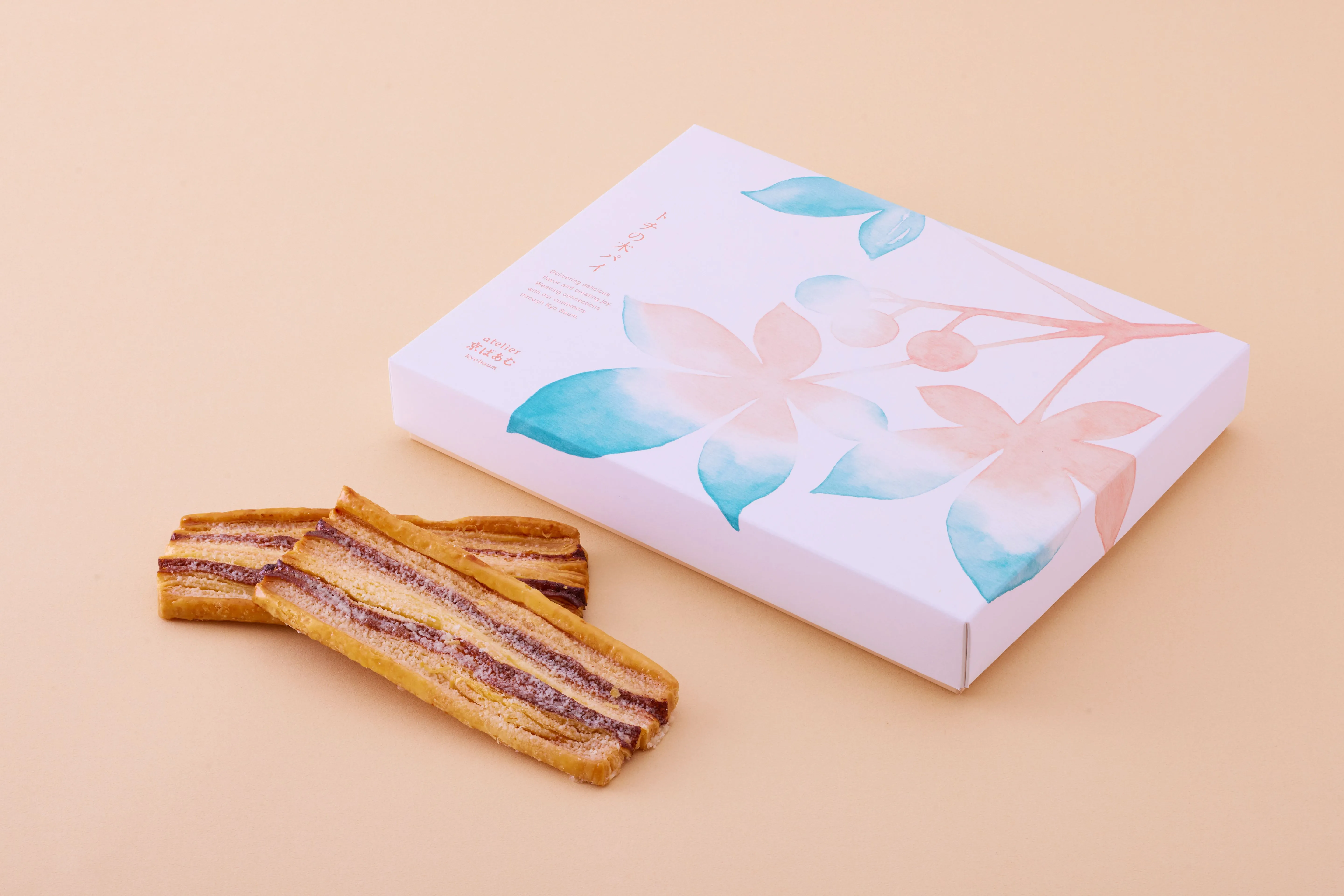 バターをたっぷりと使用し、ほどよい甘味とミルク感を効かせた、atelier京ばあむのシンボル「トチの木」をイメージしたサクサクのパイです。