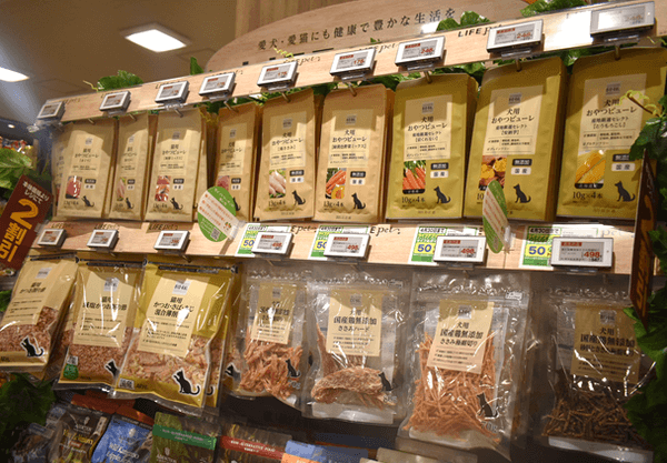 素材にこだわったものや健康を意識した商品などペットフードも取りそろえます。