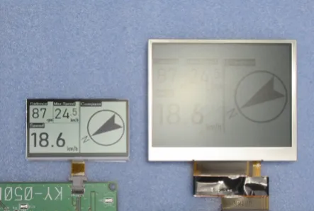 (左)MIP液晶ディスプレイ(右)透過型液晶ディスプレイ