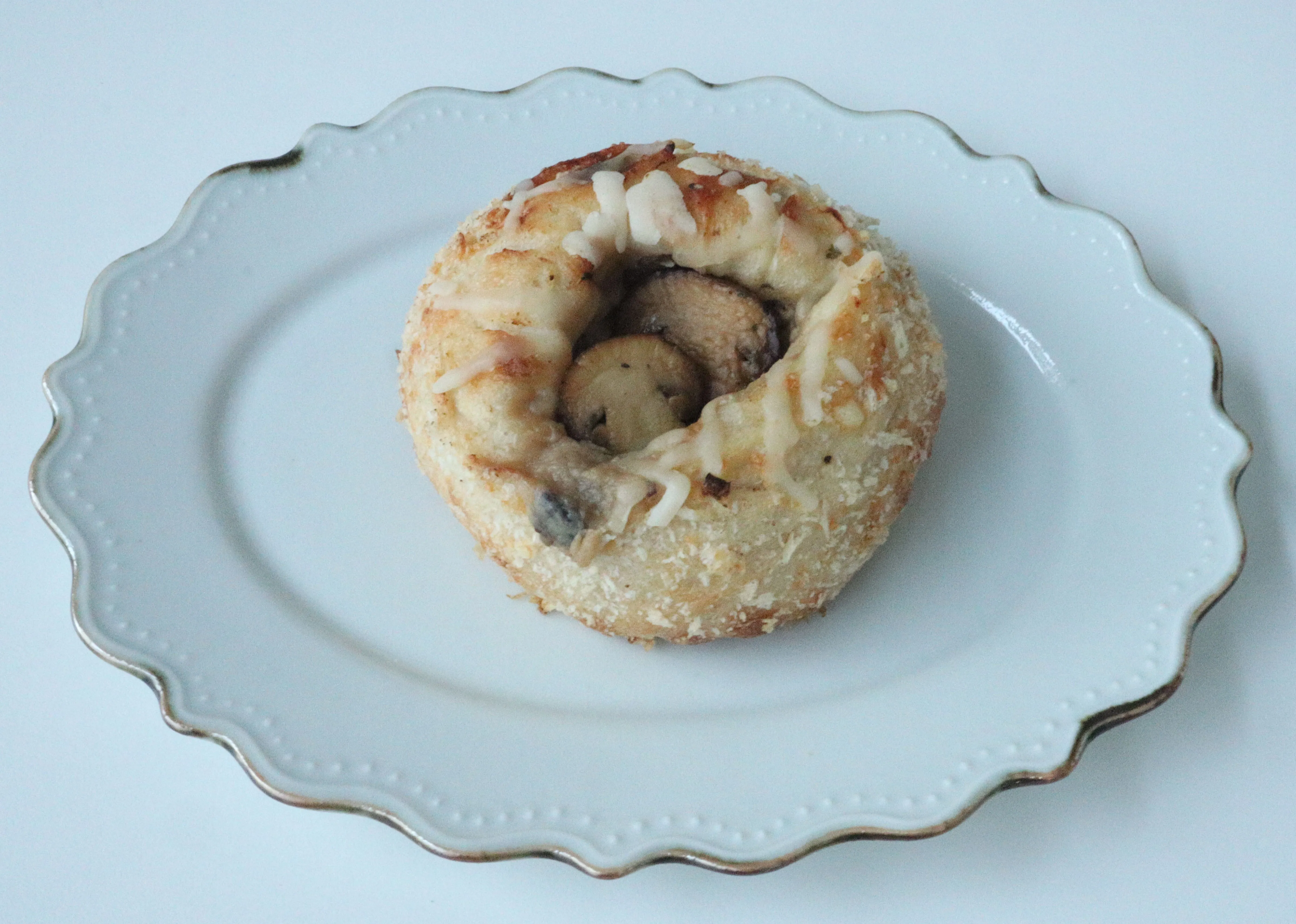 ソテーした山形県産ブラウンマッシュルームとベーコン、ホワイトソースを長時間発酵の生地で包み込んで焼き上げました。