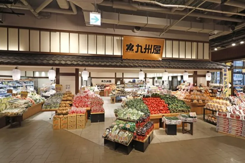 2024年に創業50周年を迎える九州屋は、駅ビルや百貨店で高品質の商品野菜・果物を販売。日本全国に83店舗展開し、青果専門店では日本最大規模となります。