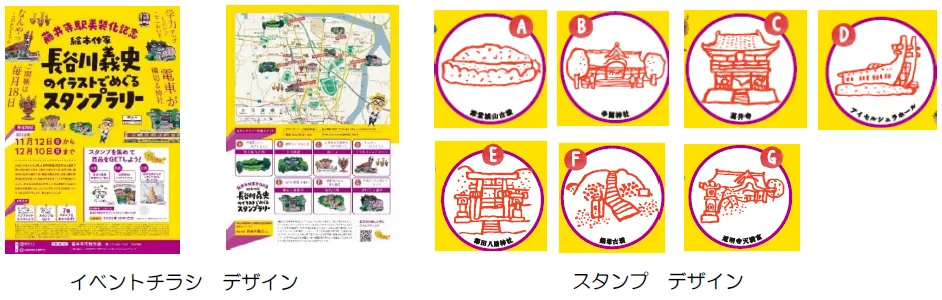 また、スタンプラリー初日の11月12日(日)9時10分から、スタンプラリー開催セレモニーを藤井寺駅北側のデラパーク(藤井寺駅北交流広場)にて行います。セレモニーでは長谷川義史氏と藤井寺駅長によるトークショーや記念撮影会を行います。