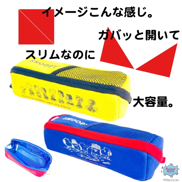 スヌーピーから、大容量のペンポーチのご紹介でした。出し入れしやすいフォルムが魅力のポーチです♪デザインもキャラクターが勢揃いしていてオススメですよ。