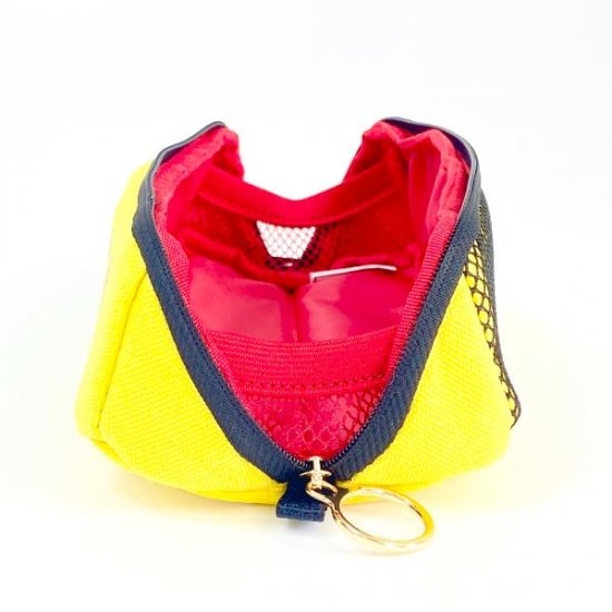 サイドまで全開しますが、中身がこぼれないようにメッシュでさりげなくガードされています♪機能性を追及した仕様に、大満足のポーチですよ。