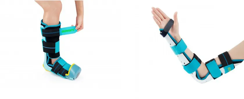 また、ボンギプスは、衝撃吸収をサポートする弾性重合体エラストマー(ELASTOMER)と、長さやクッションの調整が可能なフックループが適用され、使用に便利です。また、PRE-MOLDタイプであり、緊急患者が簡単に使用できる点、着用部位のサイズに合わせて再成形や切断が簡単である点、手術後に着用したまま簡単にX線撮影ができる点、着用後にも手洗いや簡単なシャワーが可能な点が評価されています。