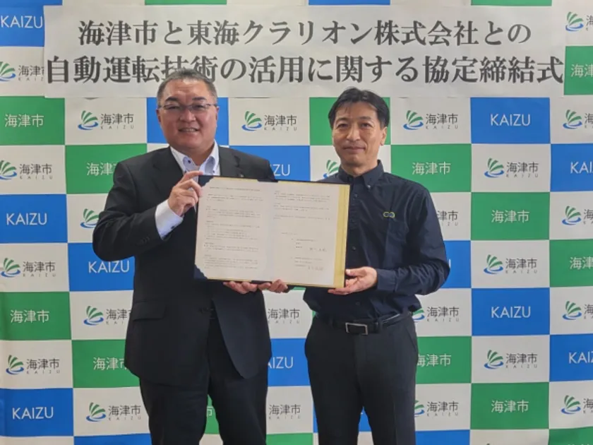 岐阜県海津市と後のせ自動運転システム『YADOCAR-iドライブ』を 開発する東海クラリオンが、10月18日に包括連携協定を締結