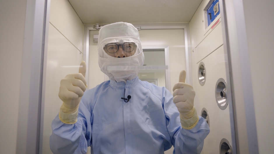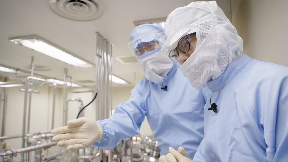 動画では、水谷さん自らがカメラを持つ場面もあり、説明を受ける時にはマイクを向けて話を聞くなど撮影に積極的に参加していただきました。興味津々で試験の様子を覗き込み質問をする知的好奇心が旺盛な姿や、製造工程での厳格な品質管理を目の当たりにして思わず「うわー!」と声を出して驚く様子など、テレビではなかなか見られない素の表情が伝わる動画となっています。