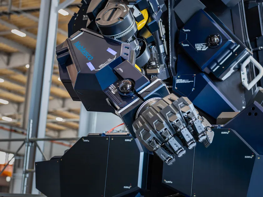 『アーカックス』に搭載されるナブテスコの精密減速機RV(TM)は、モータの回転をトルクに変換し、躯体部分の振動の低減や精密な制御を可能にする装置で、主に可搬重量の大きい中大型産業用ロボットの間接用途に採用されています。『アーカックス』には腰旋回用や走行用をはじめとして、一機体あたり9つの精密減速機RV(TM)が搭載されており、そのスムーズな動作を実現する役割を果たします。
