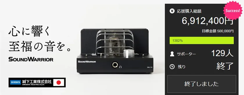 当社創業100周年のメモリアル商品として開発したSWL-T01は、2023年8月よりMakuakeで実施したクラウドファンディングにおいて、129名の方々に応援購入をいただき、目標金額に対して1382%と想定を大きく上回る反響をいただきました。