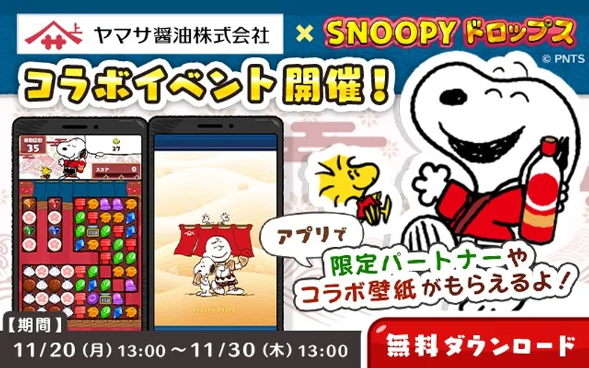 株式会社カプコン様の爽快パズルゲーム『スヌーピードロップス』にて、「ヤマサ醤油」スペシャルコラボイベントを開催いたします。