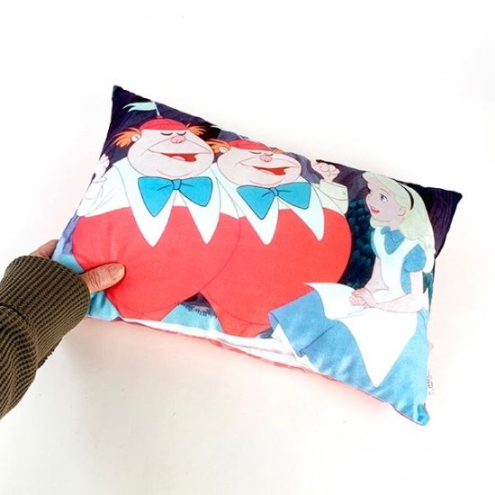 ディズニーで人気のアリス・イン・ワンダーランドから、ミニサイズの枕やフラットポーチをご覧いただきました。