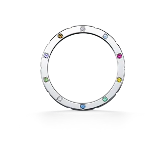 ギリシャ神話で結婚や花嫁のシンボルとされたオレンジの花の名を戴くリング。着けながら読めるメッセージ刻印と幸運のクローバーがサイド面を彩り、お好みの宝石も10個まで配置できます。アニバーサリーにも最適なリングです。