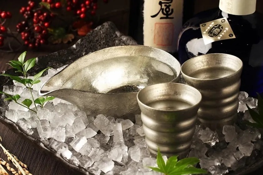 銀座方舟では「新潟県弥彦産 鎚起銅器 清雅堂」や「富山県高岡産 高岡鋳物 能作」など伝統工芸の鎚起銅器(ついきどうき)や錫(すず)の酒器を使用しています。