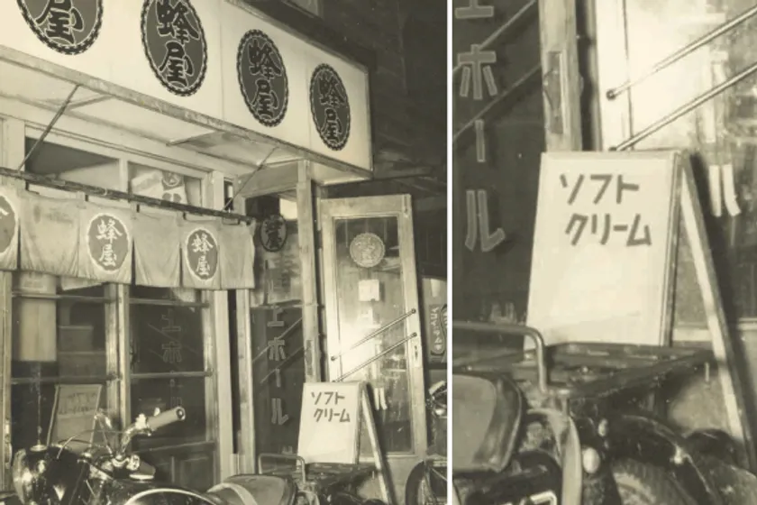 昭和22年当時の外観。看板にソフトクリームの文字が