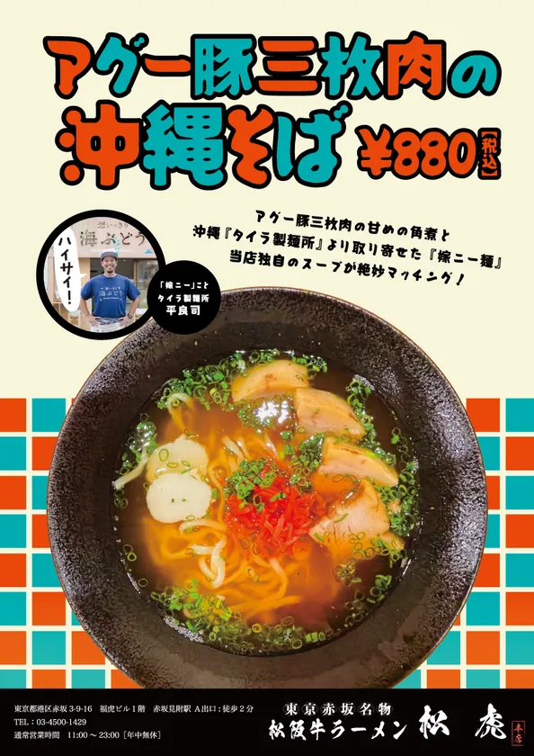 松阪牛ラーメン・ひとりしゃぶしゃぶ【 松 虎 】赤坂見附 10月27日(金)より、沖縄・激辛の沖縄フェア開催! 料亭【 福 虎 】姉妹店