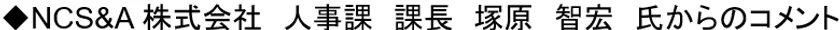 NCS&Aでは、多様な価値観を持つ優秀な人材が、その能力を最大限に発揮し生き生き働くことができる企業風土を目指し、「働き方改革」「健康経営」を主軸に働きやすい環境づくりを推進しています。人事部門においても、経営層からの大方針を受け、男性社会のイメージが強かったIT企業のイメージを払拭すべく、積極的に女性社員の採用数を増やしています。近年、女性社員から、生理休暇は取りづらい、上司に相談しにくい、などの声が人事部門にも上がってきており、女性特有の健康課題を解決することで、より女性が活躍できるよう支援したいとの思いで、本プログラムの導入を進めてきました。今後は、男性社員にも理解してもらえるよう、周知していきたいと思います。