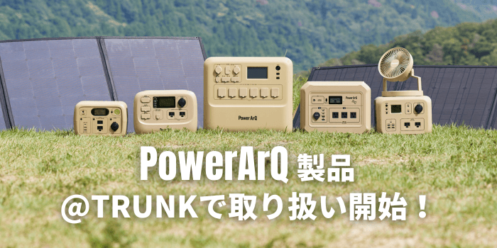 アウトドアだけでなく、災害対策グッズとしても人気の「PowerArQ(パワーアーク)」(加島商事株式会社)は、アウトドアライフセレクトショップ「@TRUNK Supported by CREW THE CAMP(アットトランク サポーテッド バイ クルーザキャンプ)」にて、製品の取り扱いがスタートしたことをお知らせいたします。