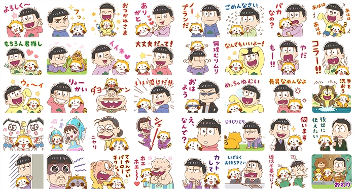日本アニメーション株式会社(本社:東京都中央区、代表取締役社長:石川和子)がアニメーション制作・ライセンス管理を行う『あらいぐまラスカル』のキャラクター「ラスカル」とTVアニメ「おそ松さん」のコラボレーションによるLINEスタンプ「ラス松さん」の配信を、本日よりLINEクリエイターマーケットにて開始いたしました。