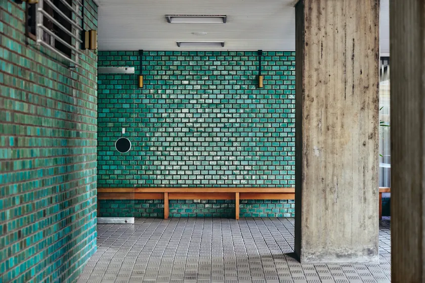 大阪駅北地区の再開発「うめきたプロジェクト」の開発エリア「うめきた2区」の端部に立地する「西田ビル」。入居する物件探しの際に、スタッフがその佇まいに一目惚れした、緑のタイルが目を惹く築58年のビルです。