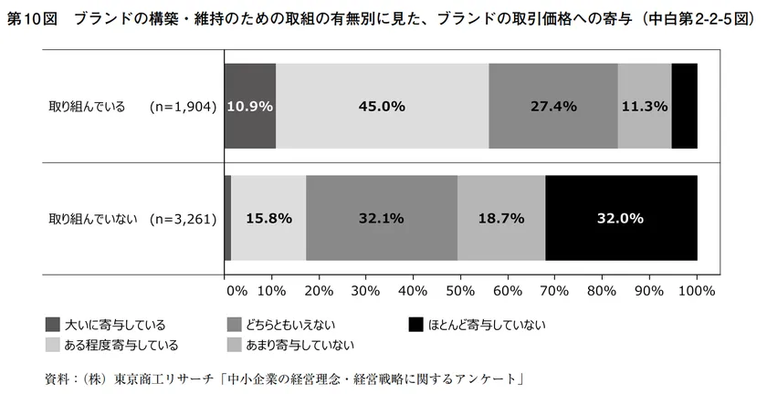 実際に、株式会社東京商工リサーチによる調査でも、ブランド構築・維持が事業取引に対して寄与する結果が表れています。