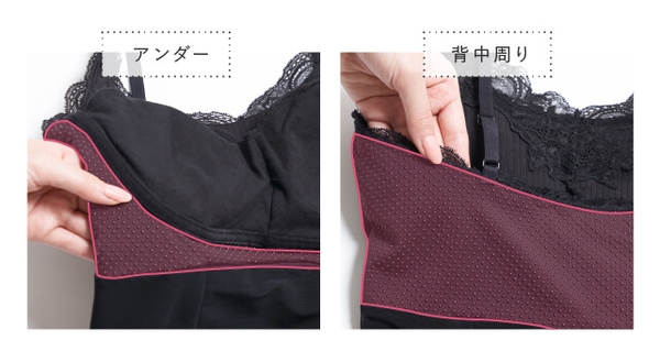さらに、すべり止め生地でカップ部分とバストがずれるのを防いでくれるため、1日中美バストをキープできます。