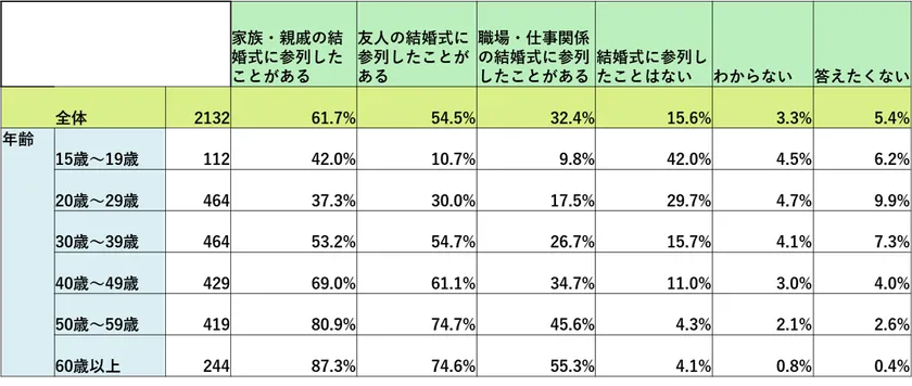 ・調査対象 :16~79歳、男女、過去1回以上結婚式に参列経験のある方
