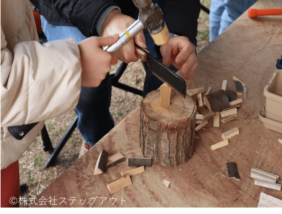 焚火を使用した体験や遊び、木工クラフトなどを楽しめる体験コーナーです。