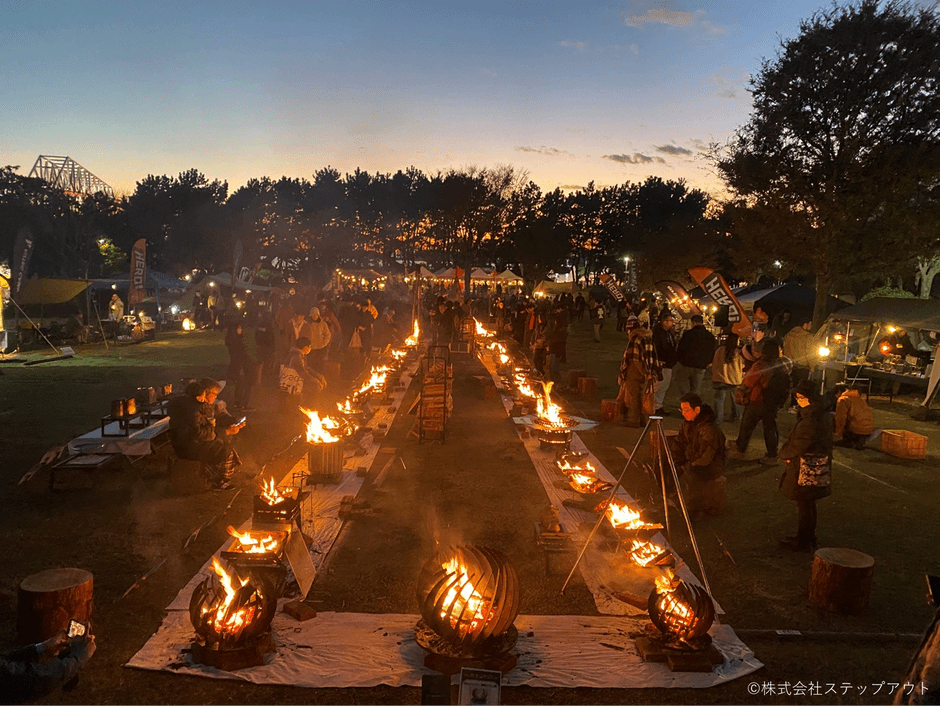 会場には、火を入れた焚火を70台以上展示します。メーカーによりデザイン、機能がさまざまで、来場者が選ぶ「焚火台人気投票」を実施します。焚火が主役となる食事、飲み物を提供する「焚火食堂」、家族で楽しめる木工クラフトの「ワークショップ」など、秋冬のアウトドアを楽しむことができるプログラムを用意しています。