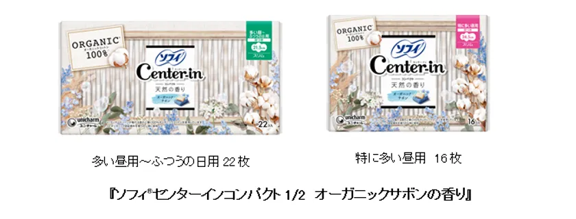 そこでこのたび、肌に触れる部分に“オーガニックコットン”を100%使用し、快適なつけ心地を実現した『ソフィ(R)センターインコンパクト1/2 オーガニックサボンの香り』を発売します。