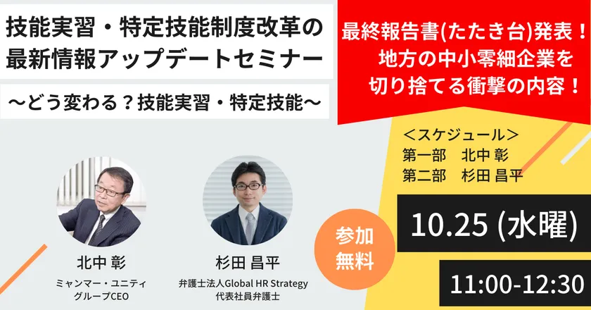 ぜひ10月25日の「技能実習・特定技能制度改革の最新情報アップデートセミナー」をご視聴ください。