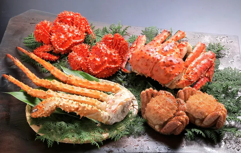北海道展バイヤー高見澤 健がおすすめ!食べ応えのあるプリップリの身が詰まった「たらばがに」、稀少な大ぶりの「花咲がに」、甘みのあるかに肉と濃厚な味噌の「毛がに」、さらにふっくら肉厚で甘み濃厚な「いばらがに脚」がセットになった豪華な福袋。