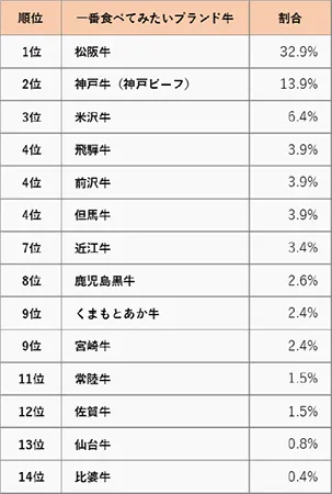 それでは、数あるブランド牛のうち、一番食べてみたいブランド牛はどれなのか。その結果をご紹介します。
