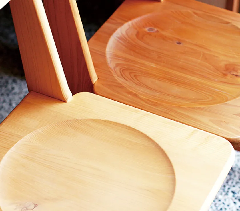 オーガニック家具の普段のお手入れは、水拭きのみ。トレイは、水拭きをするだけでひのきの香りがふわっと広がります。大きな家具だとその何倍もの香りの体験が待っています。