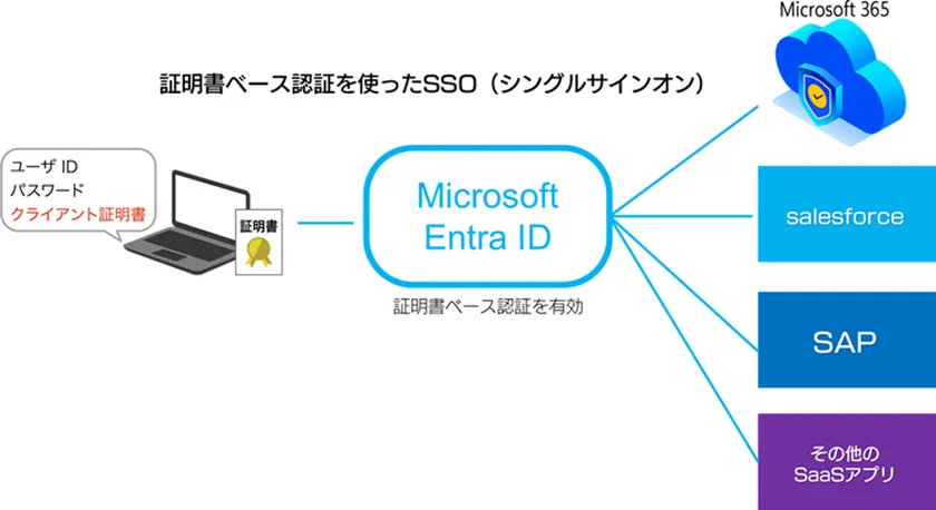 ● Microsoft Entra IDでSSO(シングルサインオン)連携している他社のSssSサービスでも、証明書ベース認証を使用できます。
