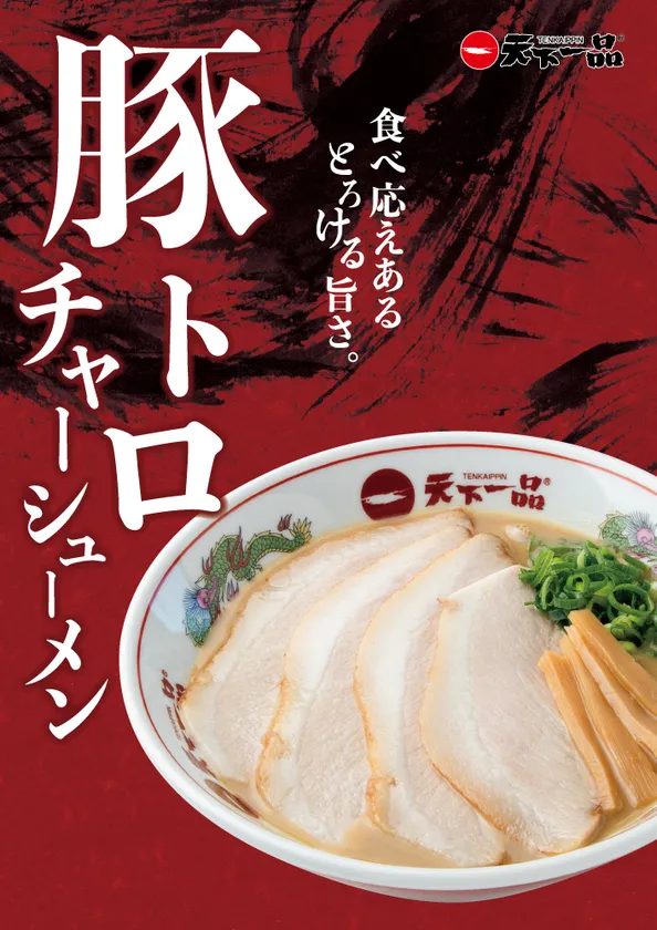 京都北白川発祥、鶏がらや野菜なども用いたこってりスープが人気の中華そば専門チェーン店「天下一品」(本社:滋賀県大津市、グループ累計215店舗を展開中※)は、2023年11月13日(月)より希少部位である豚トロを使った「豚トロチャーシューメン」を全国の天下一品店舗にて販売いたします。※2023年10月30日(月)時点での店舗数です。