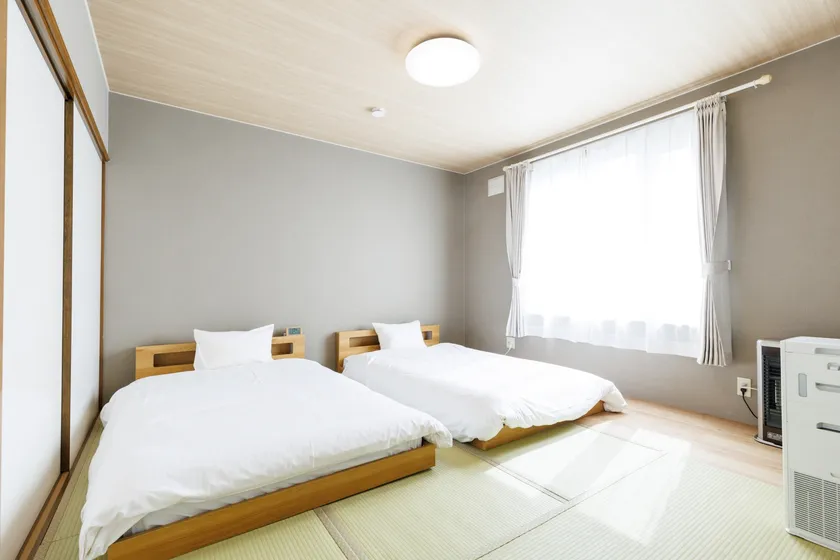 〔和室8畳〕セミダブルベッド2台・FF式ストーブ